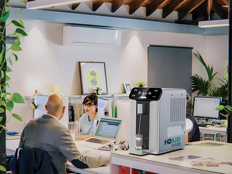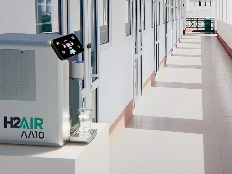 O gerador de água da H2AIR extrai e produz água do ar de maneira inteligente e contínua, em qualquer ambiente onde você esteja.